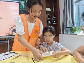 这个暑假,科探辅导志愿队首次以“导师制”模式独立策划并实施科普活动——“蝶舞永恒”蝴蝶标本制作。从知识梳理、材料准备到现场教学,全部由科探小小辅导员团队完成。暑假期间,活动在馆内已成功开展5场,服务123人次,不少亲子家庭反馈:“孩子讲得清楚,我们也做得开心!”