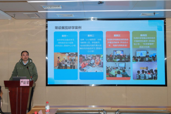 东莞科学馆严尉铭部长详细介绍了场馆的展教资源,并分享与在跨学科教学、双师教学、“小小科学辅导员”培养及定制研学课程方面的典型案例。