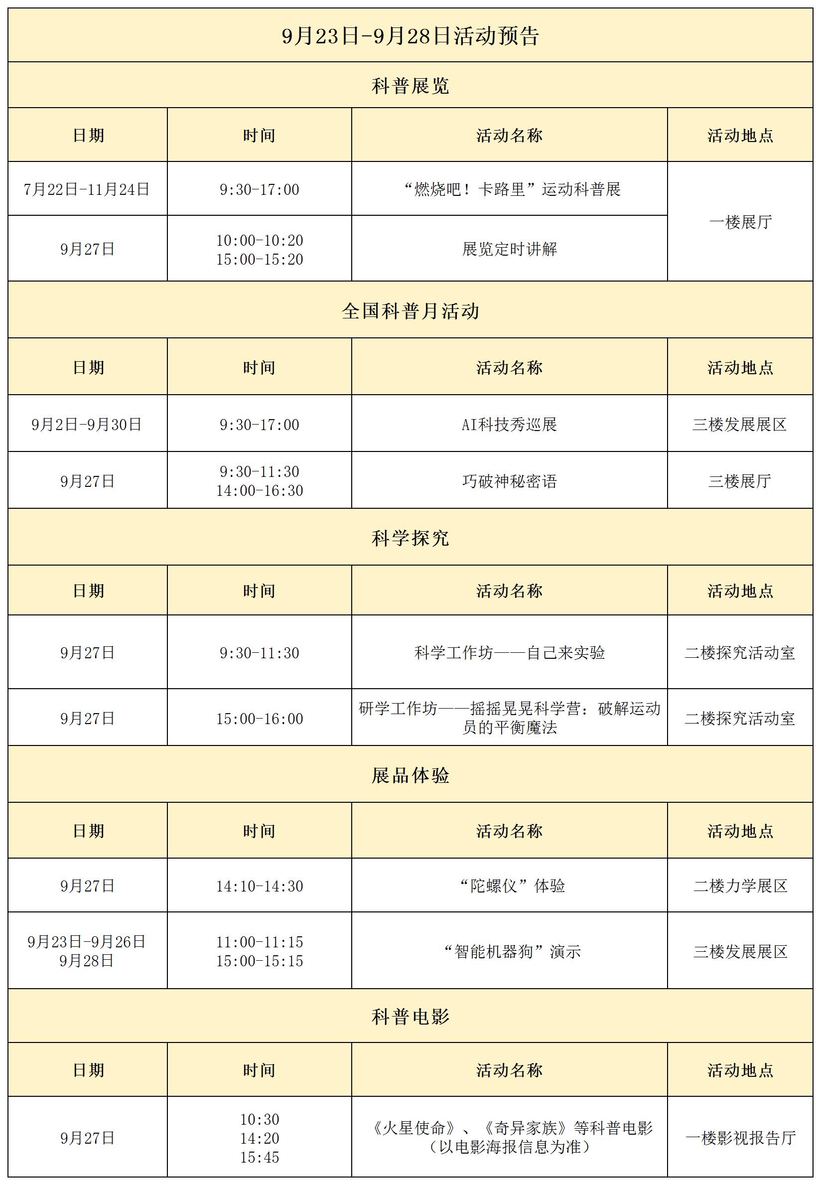 9月23日-28日活动预告