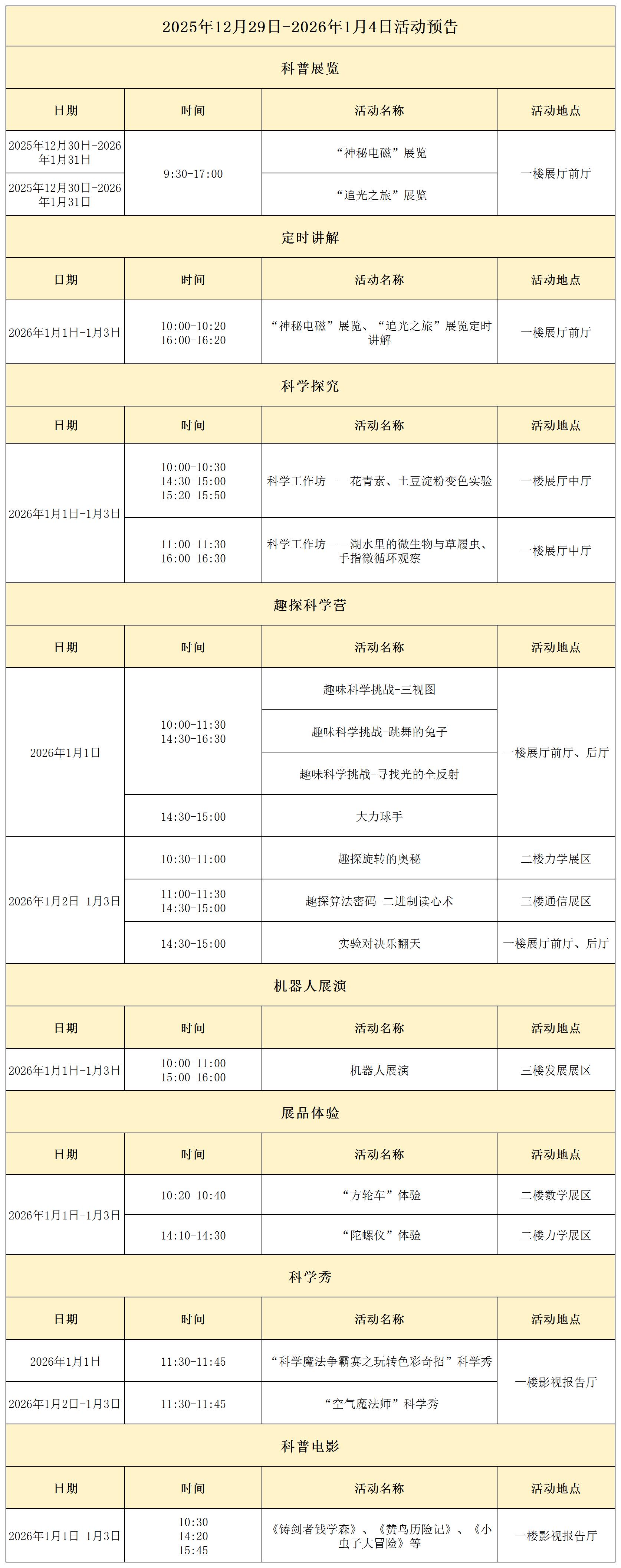 2025年12月30日-2026年1月4日活动预告