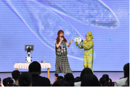 完成创作后,孩子们纷纷登上“小小科学家”分享舞台,热情洋溢地与科学馆辅导员互动交流。