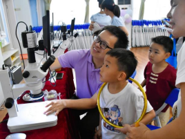 5月30日,在六一儿童节到来之际,东莞科学馆走进莞城第一幼儿园"莞味集市 科创未来"活动现场,为幼儿园师生和家长呈现了精彩的"趣奇实验室——奇妙的生物世界探险之旅"。大、中、小班的孩子们在老师和家长的共同陪伴下,通过五个精心设计的科学互动环节,开启了探索奇妙的生物世界的大门。