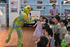 科学馆辅导员化身"卷毛老师"和他的小伙伴"小蜥蜴",通过生动有趣的互动剧场,带领孩子们认识了水中的环保小卫士——草履虫。