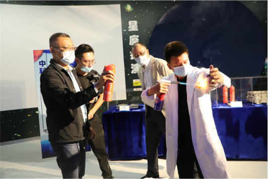 4月24日,正值第七个“中国航天日”,恰逢其时“科创点亮航天梦”——东莞航空航天科普展览会暨2022年中国航天日系列活动在东莞科学馆正式启动,市人大常委会教科文卫华侨外事工委主任孙爱平、市科协党组书记、主席张春扬、市文广旅体局二级调研员余建民、市教育局三级调研员高万军、市委军民融合办三级调研员温隆金、市文化馆馆长黄晓丽、松山湖材料实验室常务副主任陈东敏、市图书馆副馆长李映嫦等领导嘉宾和镇街(园区)科协、科技社团、学会代表参加了活动。