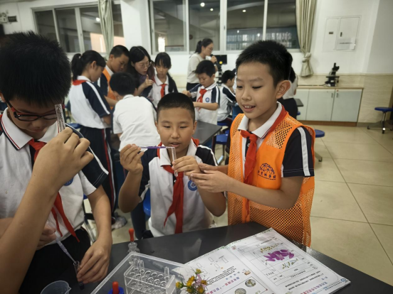上学期通过馆校合作培养的一批步步高小学生科探小小辅导员,带着在科学馆实践收获的方法技能,也出现在实验操作的各个环节。他们专注的神情、规范的操作显露出探索科学奥秘的光芒,在活动当中传递着榜样力量!