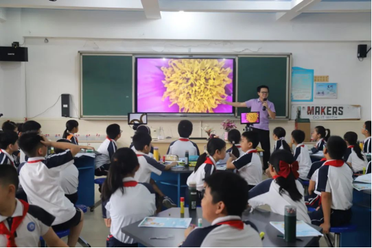 “同学们,看这里!” 步步高小学的科学教师与学生们一起化身植物形态学“研究员”,生动探讨花朵的生命蓝图,大小“研究员”一起拆解、观察、记录。知识在指尖“活”了!(知识扎根,从亲手触摸开始!)