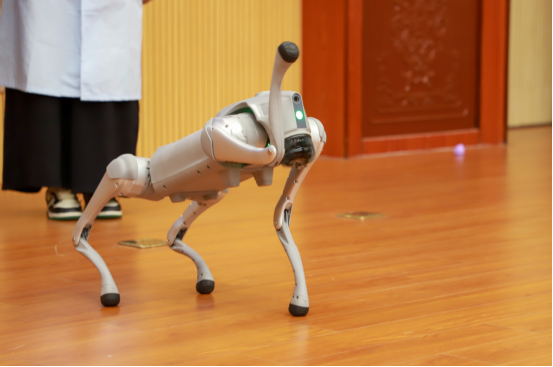 而智能机器狗的登场同样吸睛无数。这灵动的“科技萌宠”在指令下完成精准走位、高难度翻转等动作,展现出人工智能与机械工程的完美融合。同学们近距离感受智能科技的魅力,与机器狗展开趣味互动,现场洋溢着对未来科技的无限憧憬。
