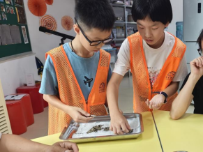 8月,正值基孔肯雅热、登革热虫媒传染病防控攻坚阶段,科探辅导志愿队的小小辅导员(科探小小辅导员)没有停下脚步。在科学馆辅导员的带领下,他们迅速成立“灭蚊小分队”,走进中山大学位于松山湖的“蚊子工厂”,实地探访蚊虫培育与防控研究一线,了解“昆虫不育技术(SIT)”。考察后,他们马不停蹄地撰写考察报告、咨询专家、制作宣讲课件,以确保传播知识的科学性。
