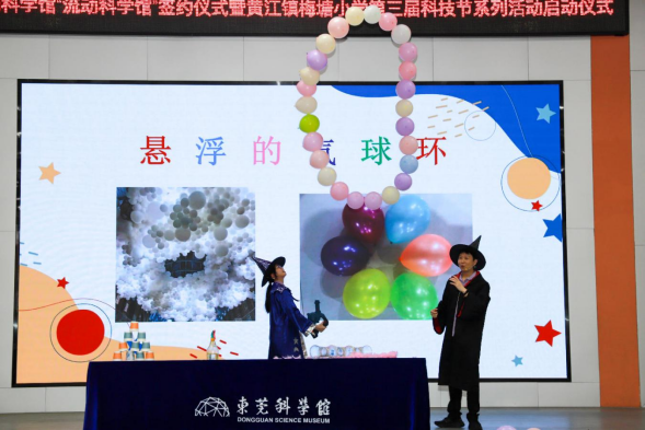 为提升全民科学素养,助力“百千万工程”,推进我市全国中小学科学教育实验区建设,9月9日下午,东莞科学馆“流动科学馆”签约仪式暨黄江镇梅塘小学第三届科技节系列活动启动仪式在梅塘小学隆重举行。