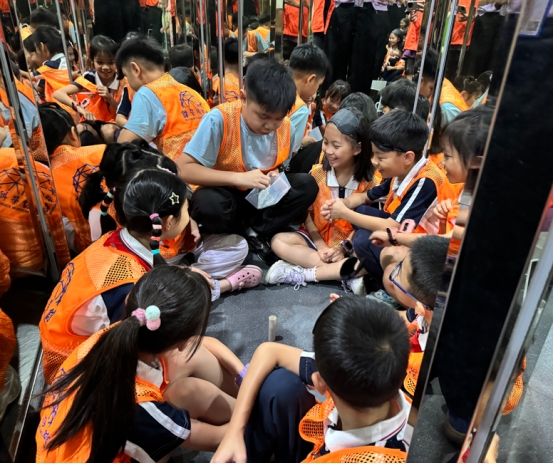 这一阶段,我们把 “主动权” 彻底交给孩子!他们自由组队,围绕展品脑洞大开,设计新玩法——没有成人视角的束缚,孩子们的创意简直像开了挂!有的小组为漩涡展品设计配套实验,通过实验观察物品在漩涡中的运动直观理解漩涡的危险性;有的为潜望镜搭建展品设置计时赛,比谁搭得快、用得对;还有的小组为柔和电击展品设计多人互动玩法和“点亮灯泡”挑战,让科学体验更具挑战性。组队协作中,沟通力、动手力、创新力全在线,这些充满童趣的玩法,也给研学方案提供了超棒灵感,让活动更对孩子的“胃口”!