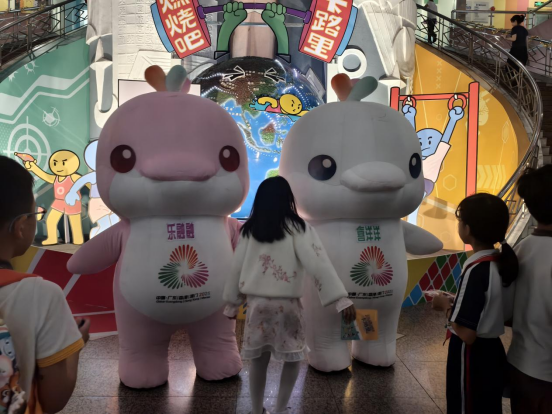 傍晚17时,科学馆门口已热闹非凡,来自莞城街道、东城街道的学生亲子家庭分批有序入馆,凭学校发放的“全运挑战卡”,与十五运吉祥物喜洋洋和乐融融一起开启一场别开生面的科学体育融合之旅。