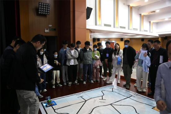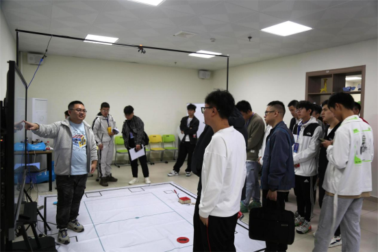 在展示学习器材环节,参训人员通过实地观摩、体验,参训人员不仅加深了对机器人竞赛场地的了解,并就器材使用等问题与专家、同行进行了深入的交流。