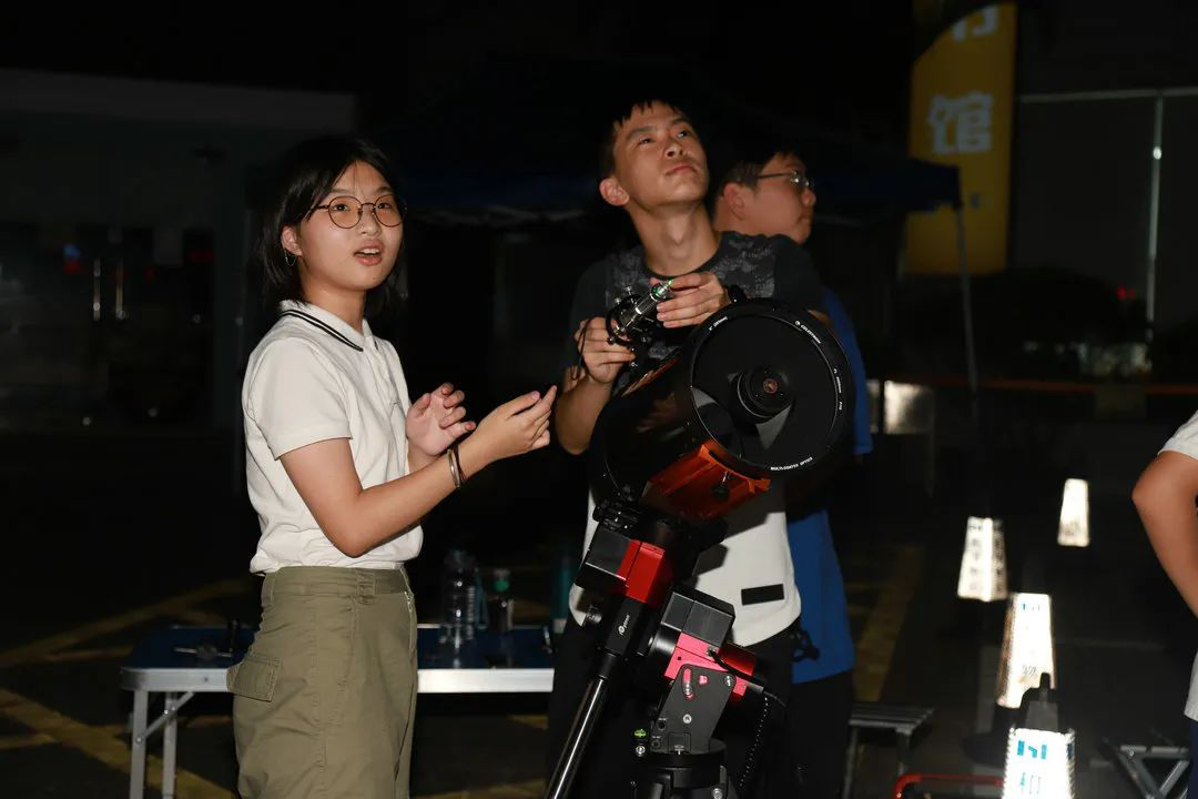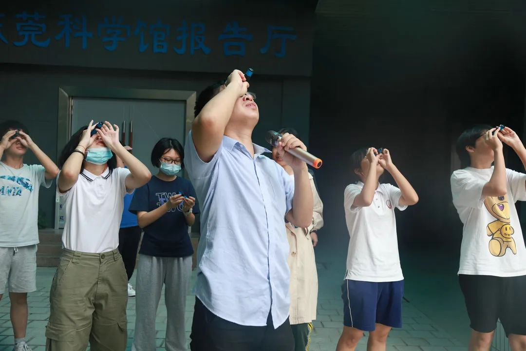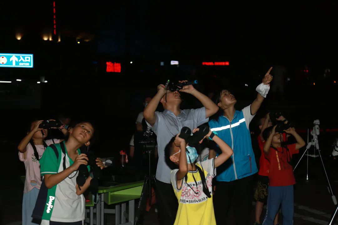 ▲学员在用双筒望远镜观察开阳双星