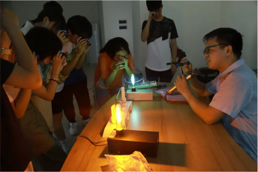 ▲学员用过手持分光镜观测不同的光谱