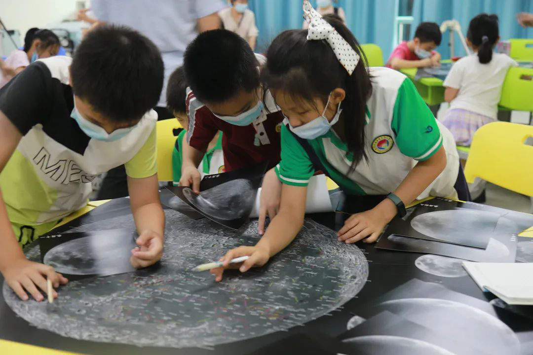▲学员在用月面地图查找环形山名称