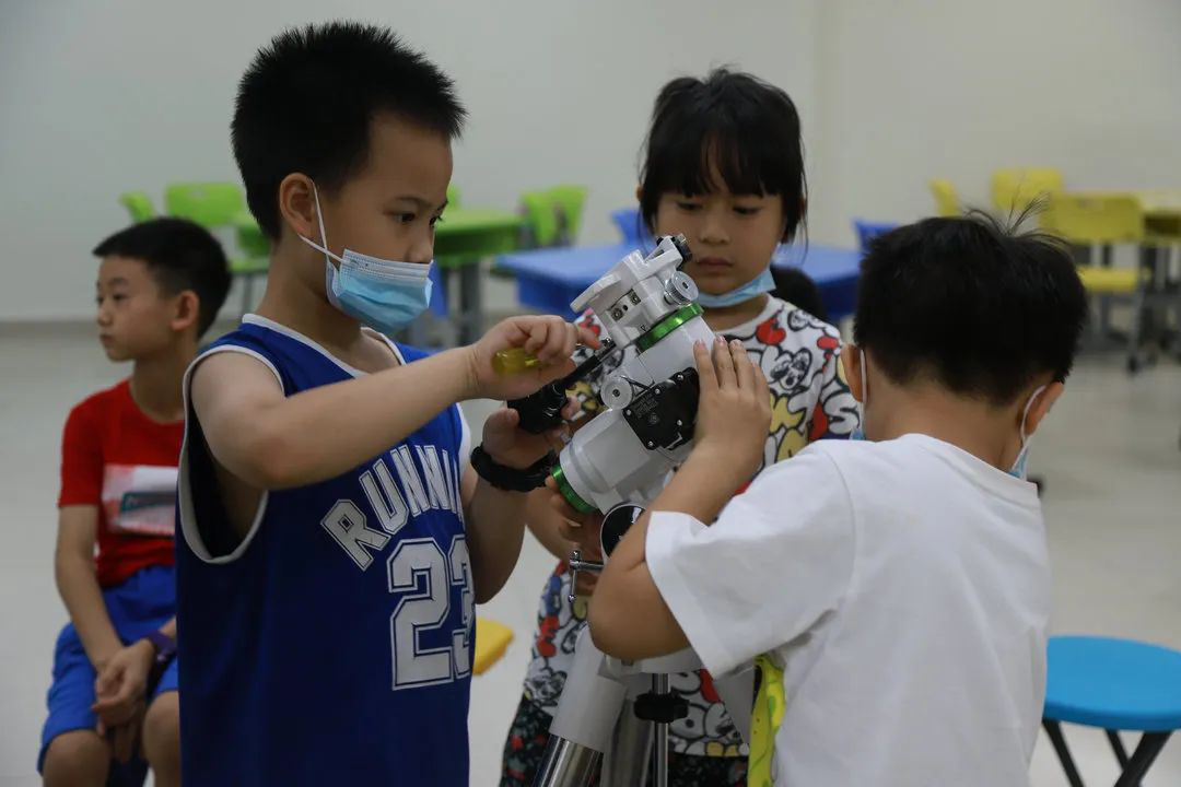 ▲学员在组装天文望远镜