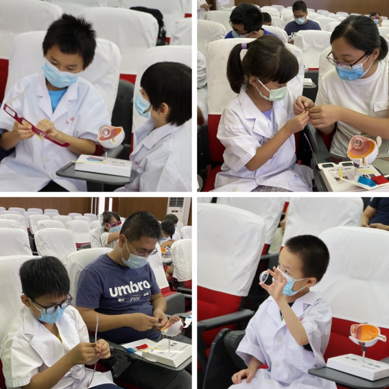 为此,东莞科学馆与东莞光明眼科医院联合举办了多期“爱眼小天使”暑期亲子研学活动,通过“眼科小医生”的角色扮演,寓教于乐,用多种形式让小朋友们认识到爱眼护眼的重要性,培养良好的用眼习惯,有效预防近视。