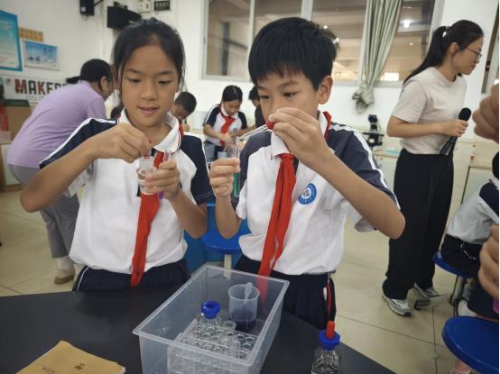 上学期通过馆校合作培养的一批步步高小学生科探小小辅导员,带着在科学馆实践收获的方法技能,也出现在实验操作的各个环节。他们专注的神情、规范的操作显露出探索科学奥秘的光芒,在活动当中传递着榜样力量!