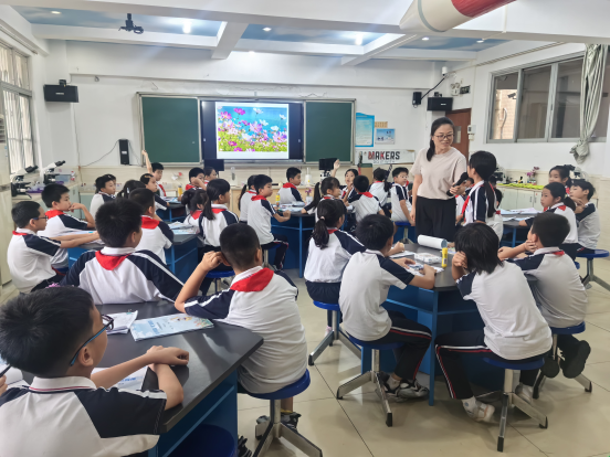 “同学们,看这里!” 步步高小学的科学教师与学生们一起化身植物形态学“研究员”,生动探讨花朵的生命蓝图,大小“研究员”一起拆解、观察、记录。知识在指尖“活”了!(知识扎根,从亲手触摸开始!)