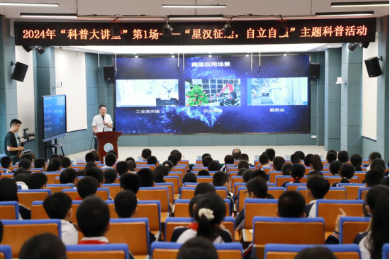 今天是第九个中国航天日,为弘扬航天精神,激发青少年对科学的兴趣和热爱,4月24日下午,东莞科学馆走进莞城平乐坊小学,开展2024年第1场“科普大讲堂”--“星汉征途,自立自强”主题科普活动。