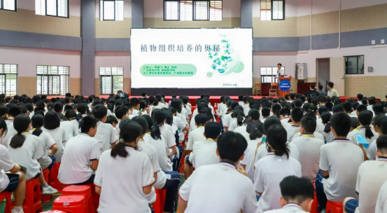 讲座中,周老师以“探索植物组织培养的奥秘”为主题,通过生动的语言和丰富的实例,详细介绍了植物组织培养的基础知识,包括其定义、原理和操作流程,并为同学们区分了植物组织培养与扦插繁殖的不同之处,强调了组织培养在植物繁殖、遗传改良和生物技术应用中的独特优势。