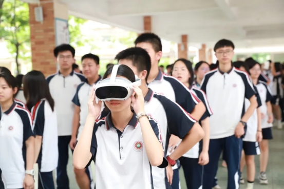 VR眼镜也备受欢迎,通过虚拟与现实奇妙融合,带来沉浸式的体验,同学们仿佛置身科学馆内,在虚实交错间感受科技魅力。