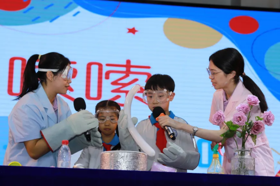 科学秀哆哆嗦嗦是冰呀以液氮为主角,带来一场别开生面的低温实验秀,液氮炸弹引爆的瞬间更是掀起全场高潮。同学们踊跃参与互动,现场惊叹与欢呼不断。